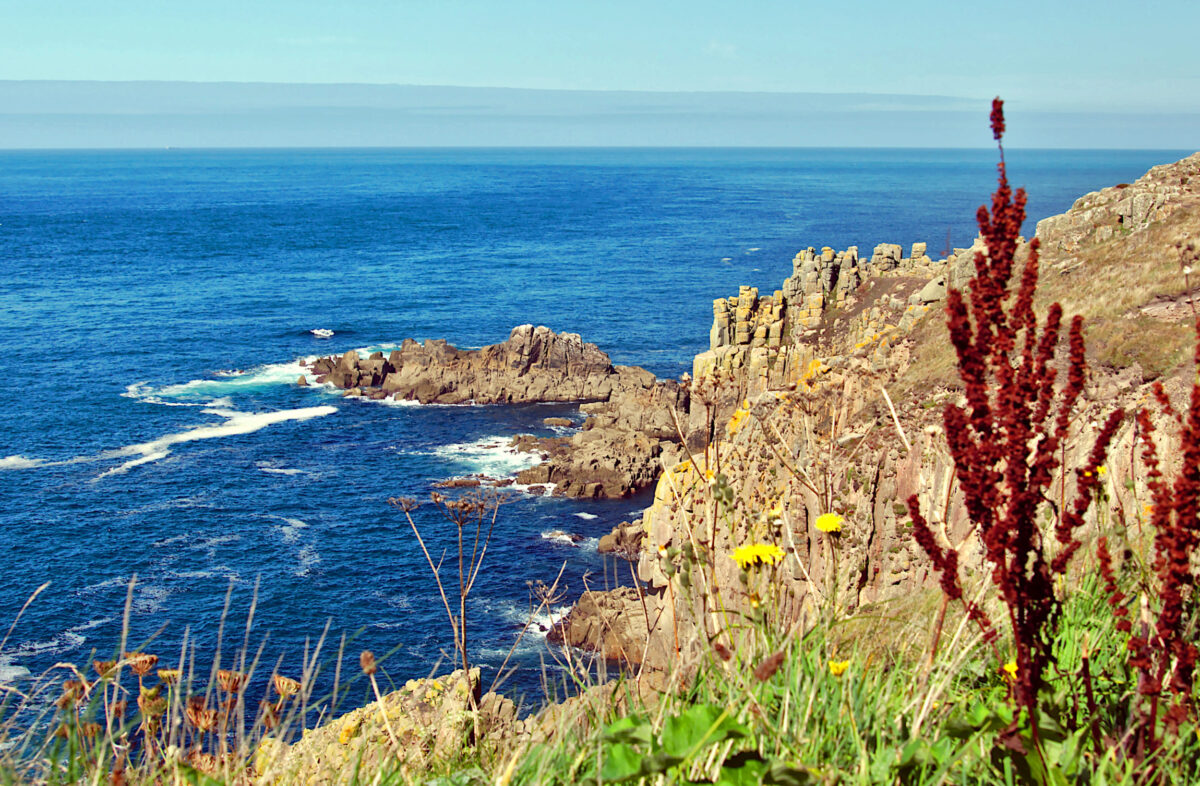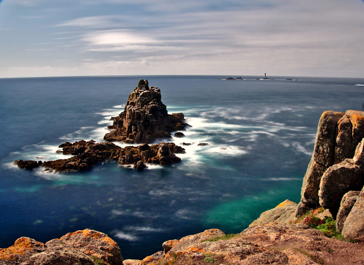 Für den Nachmittag war dann gleich die nächste Sehenswürdigkeit für alle Touristen in Cornwall angedacht. Lands End ist der westlichste Punkt Englands und definitiv voller als Lizard Point. Was auch immer hier schöner ist als im Süden 😉 Die Touristenfalle im Eingangsbereich ist es mit Sicherheit nicht. Hier reihen sich Souvenir-Geschäfte an Fressbuden und an allerlei „Attraktionen“, sei es Kino oder sonst irgendwas, wo Eltern für ihre Kinder jede Menge Geld ausgeben können, ohne auch nur einen Fuß in die Natur setzen zu müssen.