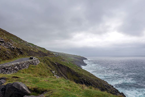 Die nächste Etappe führte uns auf den Ring of Kerry. Angeblich ein absolutes Muss auf einer Irland Rundreise und wir hatten ein bisschen Sorge vor zu vielem Verkehr. Wir aber hatten Glück und sind nicht allzu vielen Reisebussen begegnet. Wir haben einen kleinen Stopp in Caherciveen eingelegt und dabei diese Burg gefunden, die heute ein Museum beherbergt.