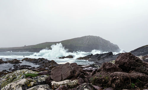 Leider hat es auch an diesem Tag wieder ohne Ende geregnet, so dass unsere Stopps nicht besonders zahlreich und eher kurz ausfielen. Was wir uns nicht entgehen lassen konnten, war das Spiel der Wellen in der Nähe vom Ballinskellings Castle. Wir waren völlig durchnässt, aber die Naturgewalten waren einfach zu faszinierend.