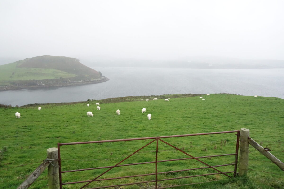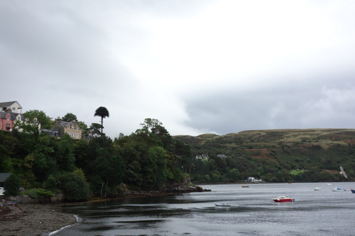Die Überfahrt nach Skye war schön mit herrlichem Blick auf die Küsten. Wir haben sogar Delphine gesehen. Leider hat es sich schnell zugezogen und auch wieder angefangen zu regnen.