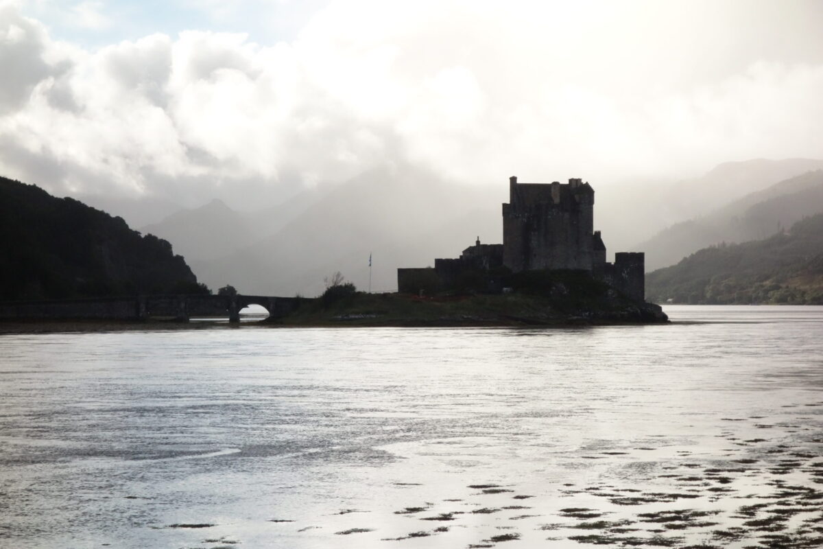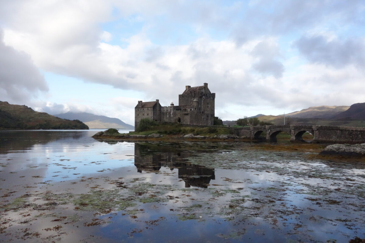 Wir haben Skye nicht wieder mit der Fähre, sondern am südöstlichen Ende über die Skye Bridge verlassen. Von dort sind wir kurz nach Dornie gedüst, um uns die Burg anzusehen, die aus Filmen wie „Highlander“, „Braveheart“ und „Rob Roy“ bekannt ist. Eine wirklich beeindruckende Kulisse. Die Berge und Wolken haben die Atmosphäre irgendwie gespenstisch aufgeladen. Man konnte fast glauben, gleich donnern tausende Hufen vorbei und stürmen die Burg. Exakt so lange, bis der nächste Bus mit Touristen kam 🙁