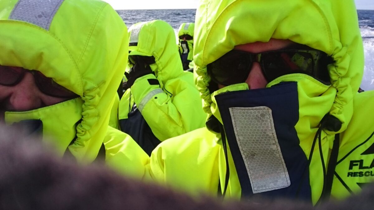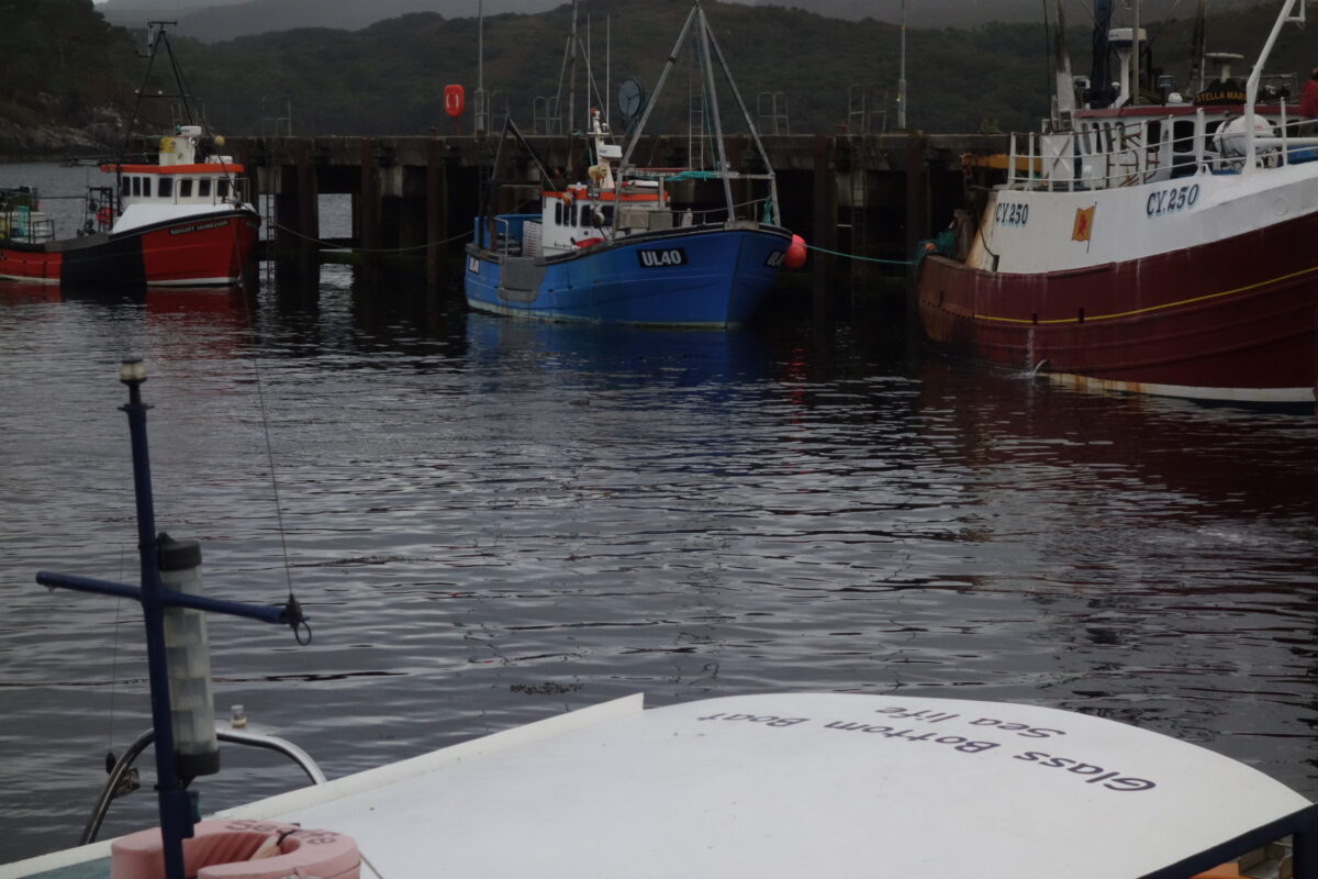 Unser eigentliches Ziel des Tages war Gairloch. Hier hatten wir einen Termin zum Whale watching. Zuerst wurden wir an der Station dick eingepackt. Hosen, Jacken, Handschuhe, Mütze, Sonnenbrille… alles was man brauchte, um auf See nicht zu erfrieren. Mit einem Schlauchboot für nur 12 Passagiere ging es dann los. Und schon nach 2 Minuten waren alle froh um die vielen Klamotten, die wir bekommen haben. Der Wind pfiff eisig kalt um unsere Ohren und die Gischt ließ auch nicht lange auf sich warten. Ein Riesenspaß! Leider haben wir in den eigentlichen vier Stunden, die diese Fahrt dauern sollte, keinen einzigen Wal oder Delphin gesehen. Nur Vögel. Jede Menge. Unser Fahrer versicherte uns immer wieder, dass dort, wo die Vögel sind, auch die Wale sind. Nur haben wir keinen gefunden. Selbst unser Fahrer klang schon etwas frustriert und hat noch eine halbe Stunde dran gehängt, um noch einen letzten Spot zu suchen. Dort hatten wir dann auch endlich Glück! Zwei Wale sind direkt vor uns aufgetaucht. Der eine war nur etwa 5 Meter neben unserem Boot. Sehr beeindruckend! Ich habe mich wahnsinnig erschreckt, als so plötzlich neben mir dieses Prusten erklang und eine Minifontäne hoch spritzte. So schnell konnte kein Mensch fotografieren. Mit etwas Mühe kann man auf einem Bild noch die Rückenflosse des einen Wals erkennen. Da es auch langsam dämmerte, mussten wir zurück und konnten die Wale nicht weiter verfolgen. Auf der Rückfahrt habe ich dann tatsächlich noch einen Delphin gesehen. Im Hafenbecken schwamm dann netterweise noch eine Robbe, die auf Abfälle der ankommenden Fischkutter gelauert hat.