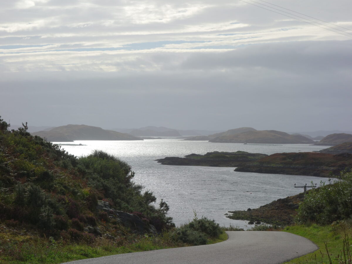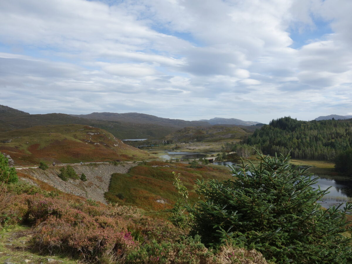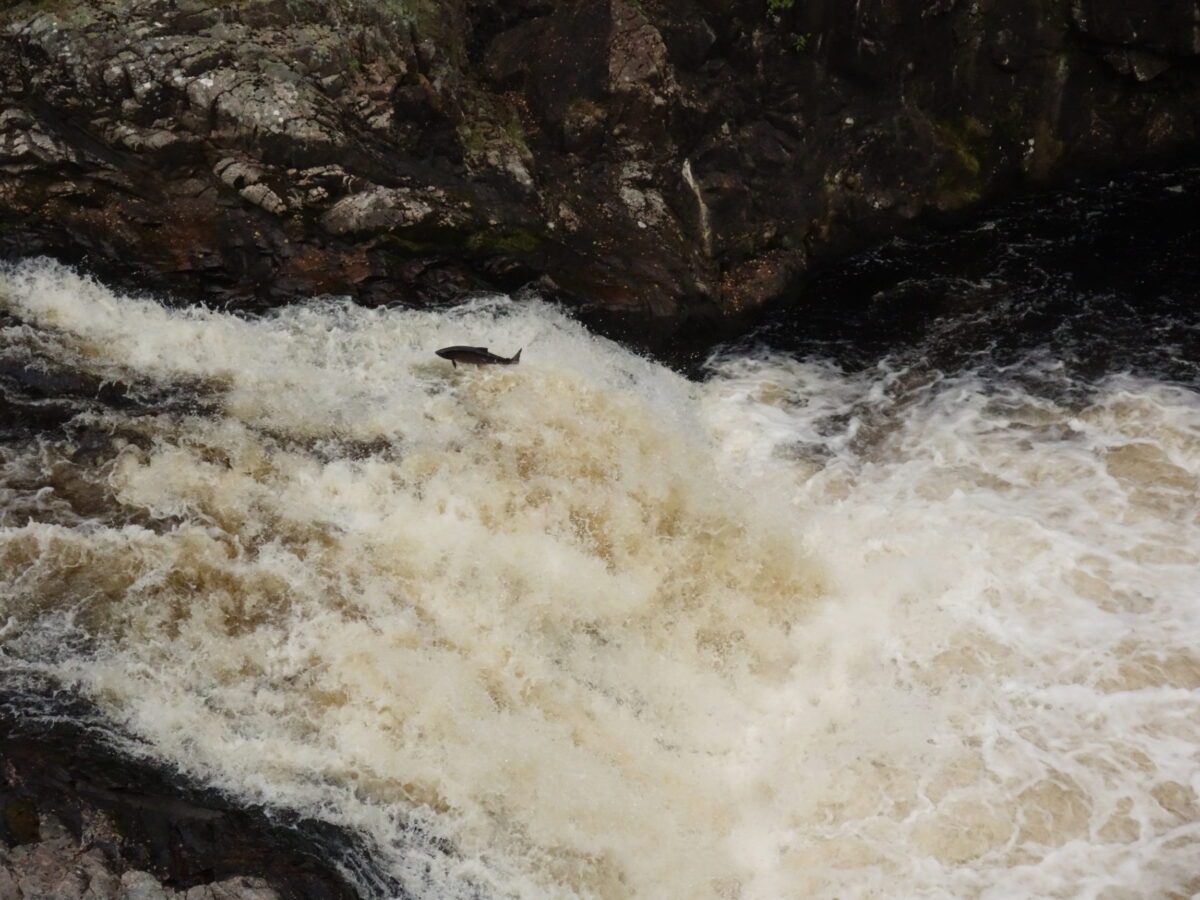 Auf der Strecke zwischen Scourie und Lairg hatten unseren nördlichsten Punkt der Reise erreicht und dann (streckentechnisch) tatsächlich schon den Rückweg angetreten. In Lairg haben wir auch übernachtet. Dort angekommen, fragte unser Gastgeber, ob wir schon die Wasserfälle mit den Lachsen gesehen hätten. Wasserfälle? Lachse? Nix wie hin! Mit etwas Geduld konnte man an den Falls of Shin tatsächlich Lachse dabei beobachten, wie sie gegen den Strom schwimmen und sich den kleinen Wasserfall hinaufkämpfen zu ihren Laichplätzen. Ich war mal wieder total beeindruckt. So etwas habe ich noch nie vorher gesehen (Fernsehen zählt nicht!).