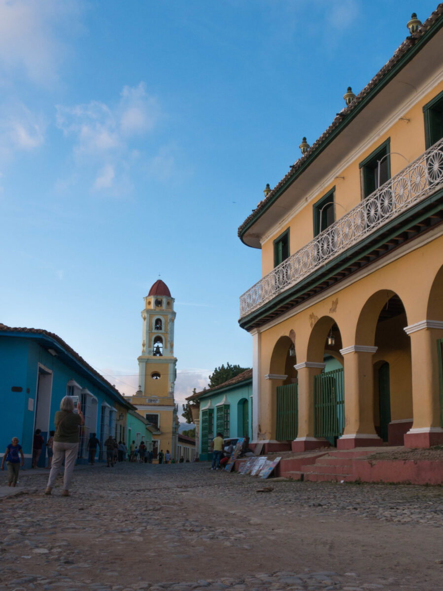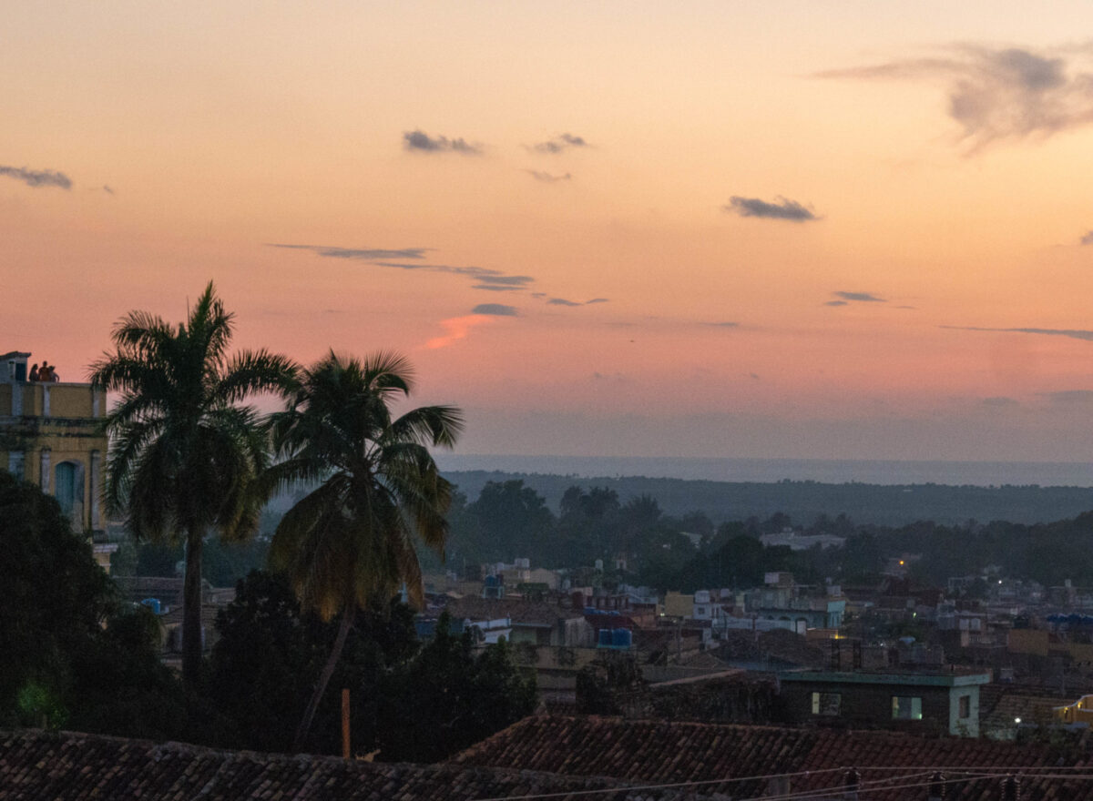 Nach nur 1,5 Tagen ging es dann sehr früh am Morgen mit dem Touristen-Überland-Bus Viazul nach Trinidad. Laut Fahrplan 10 Stunden Fahrt in einem auf gefühlt -2 Grad gekühlten Bus. Der Fahrer war entweder schneller oder hat Pausen gespart, jedenfalls war ich schon um 16 Uhr am Zielort. Da es bereits um 18 Uhr auf Kuba dunkel ist, habe ich nur schnell meine Unterkunft gesucht, mein Gepäck abgestellt und bin in die Altstadt, um den Sonnenuntergang zu genießen.